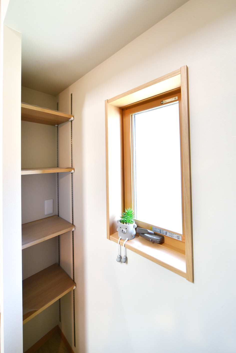 キッチンから勝手口の間にパントリーを作りました。家事動線と使い勝手が両立した奥様一押しのパントリーに。